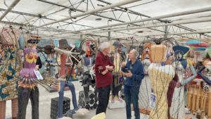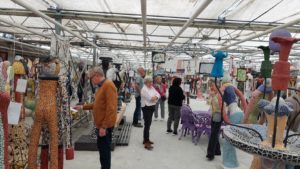 Na deze inleiding gingen we de kas in waar we de overweldigende uitstalling konden bewonderen van meer dan 500 levensgrote mozaïekbeelden van mensen in allerlei kolderieke uitdossingen. Humor speelt een heel grote rol in het werk van Willem Berkhout. Deze kunstenaar is autodidact en daarom uniek.
