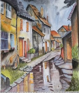Kleurig straatje pastelpotlood