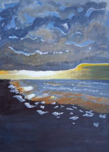 Donkere wolken boven de golven