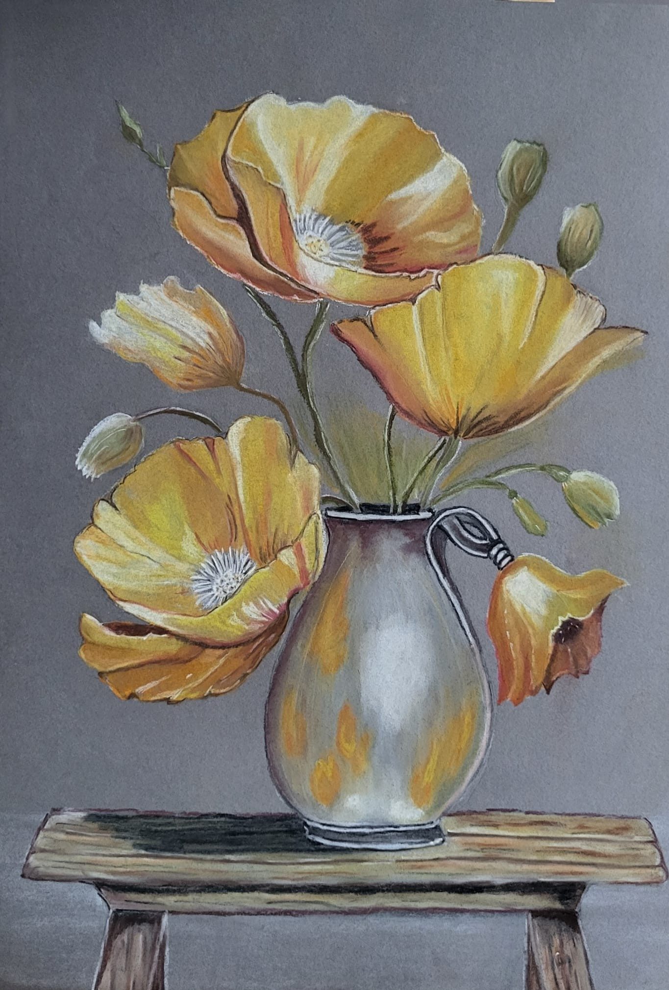 Vaas met bloemen – pastelpotlood